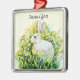 Bunny Rabbit Framed Miniature Watercolor Art Print. Small pece of art on a ornament. Spring eastertime decoration. Tiny animal Art.