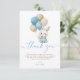 Bunny rabbit balloons blue boy baby shower thank you card.