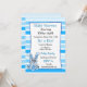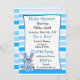 Adorable blue striped cute bunny rabbit themed baby shower invitation.