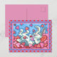 BUNNY RABBIT & COLORFUL HEARTS RAINING VALENTINES HOLIDAY POSTCARD