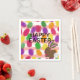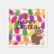 Fun pastel pink and white stripes with colourful Easter eggs in pink, purple, yellow, orange, green. Festive paper napkins with cute bunny rabbit with big pink ears and white cottontail with the wording Happy Easter in black text. Original designs © TamiraZDesigns