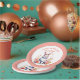 A sweet little bunny rabbit surrounded by pink and coral flowers watercolor illustration personalised birthday party paper plates for a little girl.