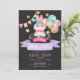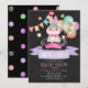 This cute girl's birthday invitation features a bunny rabbit looking out of a magician's hat with faux/fake gold stars, bunting flags, and colourful balloons in watercolor on a dark grey background. The reverse side features a black background with polka dots. Personalise for your needs. You can find more matching products at my store.