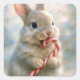 Bunny Rabbit Nibbling On a Candy Cane Square Sticker