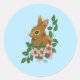 Bunny Rabbit Pink Flowers Classic Round Sticker