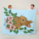 Bunny Rabbit Pink Flowers Fleece Blanket
