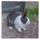 A beautiful photograph of a black and white bunny rabbit printed on a ceramic tile.