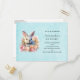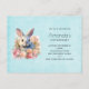 Birthday party invitation postcard with a watercolor image. A white gray bunny rabbit surrounded by a garland of pink and peach roses. For bunny lovers and Easter themes and birthdays and showers.
