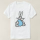 Cute and cuddly Easter Bunny holding a Baby Blue Easter egg on white background. Great gift for anyone that loves rabbits or Easter! Images used on this item are licensed and © Graphics Factory.com
