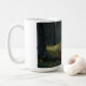 This mug shows a darling brown and white Easter bunny in the woods with a basket of surprises.