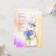 A springtime, watercolor, birthday party invitation featuring a bunny with a bouquet of flowers in hand and on his head. (<a href="https://www.freepik.com/free-photos-vectors/banner">Banner vector created by freepik - www.freepik.com</a>). <br/><br/>The card is easy to customise with your wording, font, font colour and choice of paper types.<br/><br/>Not exactly what you're looking for? All our products can be custom designed to meet your needs at no extra charge.<br/><br/>Simply contact us at heartfelthelper@gmail.com<br/><br/>Coordinating products available: