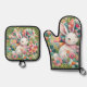 Bunny with Quilt and Flowers Oven Mitt & Pot Holder Set