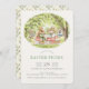 This whimsical Easter picnic invitation features woodland animals such as a squirrel, bunny, otter, and hedgehog on picnic by the river under the trees. The reverse side features a cream background with botanical patterns. Personalize it for your needs. You can find more bunny products at my store.