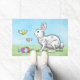 The Easter Bunny is with the flying Easter eggs ready for this year's egg hunt.