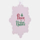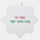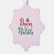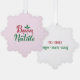 Front: Cute Italian Merry Christmas/Buon tree ornament in red and green on white in a beautiful pewter metal snowflake frame.