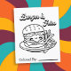 Colour me page for kids or adults. Burger and fries cute food colouring page.