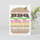 Get your summer party off to a fun start with these cute invitations. Designed to look like the side view of a hamburger, the different layers of the burger and condiments are actually lines of text that spell out the party details. The design features the words 'Please join us for a BBQ' and then the remaining lines of text are customisable by you. Just fill in your party information and adjust text sizes, if needed, from within the design tool which is accessed by clicking 'Customise further'. The reverse side is printed with a red picnic check and has an open block in the centre where you can add more party detail. If no further text is needed, simply delete the sample text and the box!