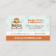 A business card great for burger restaurants, grills, and food trucks that sell burgers, hot dogs, fries, and milkshakes. A food pattern background in green with punches of orange to brighten up this fun business card.