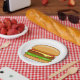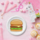 Burger vector illustration clipart logo icon cartoon. Customisable background colour and text.