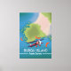 Burgh Island Devon travel map with a beautiful old vintage style red biplane.