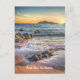 English Scenes series: A beautiful seascape photograph showing Burgh Island, shot from Bantham Beach at sundown. The deep golden yellow sunlight reflects off the wet rocks and wave tops, infusing the whole scene with warmth.