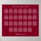 Burgundy 26 Table Wedding Seating Chart Poster, please personalise the names of the couple and the names of the guests along with any of the other text that you may wish to personalise. A stylish seating chart poster featuring elegant white text on a lovely rich bold burgundy background.