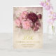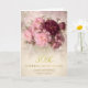 A buugundy and pink flower bouquet, on a dusty pink and gray background, with gold text makes a beautiful and elegant card for a 50th wedding anniversary.