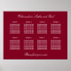Burgundy 8 Table Wedding Seating Chart Poster, please personalise the names of the couple and the names of the guests along with any of the other text that you may wish to personalise. A stylish seating chart poster featuring elegant white text on a lovely burgundy colour background.