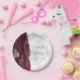 Burgundy Agate Marble Gold Script Wedding Paper Plate