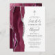 Burgundy Agate Silver Glitter First Holy Communion Invitation