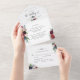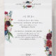 Elegant Burgundy and Blue Floral All-in-One Wedding invitation with perforated RSVP. Environmentally friendly as there is no need for extra insert cards, RSVP cards or even envelopes, this invitation has it all! Ability to add both Wedding Ceremony and Reception details, as well as RSVP postcard ready for guests to fill in and mail! Captivating design with exquisite burgundy, berry, dusty blue, navy and blush watercolor floral elements and modern hand written calligraphy details. Design with guest names and address or a phrase in the back. Same design with photograph in the back instead of text also available. instead of photograph on the back also available. Striking design ideal for the elegant, yet practical and eco-friendly couple!