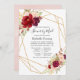 Blush pink and burgundy (marsala) floral long distance baby or bridal shower by mail invitation with a gold glitter geometric frame.