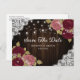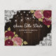 Elegant burgundy and blush wedding save the date postcard ideal for a rustic burgundy and blush wedding party.