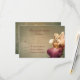 Elegant Fall wedding response RSVP card done in an antique green background. Stunning graphics of a burgundy and cream coloured iris flower decorates the right side of the card. Personalise the burgundy coloured script text for your wedding celebration. Matching products are available.