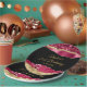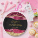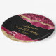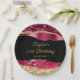 This elegant and glamourous birthday party plate features burgundy red and gold faux glitter glam tears on a black background. The text combines handwritten script and modern sans serif fonts for a classy and sophisticated look.