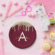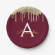 Burgundy and Gold Glitter Monogram Birthday Paper Plate