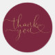 Burgundy And Gold Heart Script Thank You Classic Round Sticker