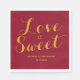 Elegant burgundy and gold love is sweet napkins which can be easily personalised with names and the date.