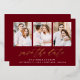 Announce your upcoming nuptials in style with our Elegant Script photo save the date card. The elegant save the date cards display 3 of your favourite engagement photos framed in burgundy with "save the date" in a gold foil modern calligraphy script. Personalise the card by adding your names, wedding date, and wedding location. The minimalist save the date card reverses to a solid burgundy background or a colour of your choice.