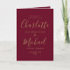 Burgundy and gold signature script wedding program featuring chic modern typography. This stylish wedding program can be personalised with your special wedding day information. Designed by Thisisnotme©