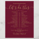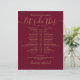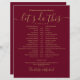 This simple elegant burgundy and gold wedding schedule-timeline can be personalised with your wedding details in modern lettering. Designed by Thisisnotme©