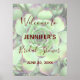 Create your own photo bridal shower welcome sign poster. Add your own photo behind the faded image. This photo features a green succulent with red-tipped leaves. You can change the dark red or burgundy colour of the modern style text and calligraphy font.