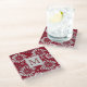 Burgundy and Grey Floral Monogram Glass Coaster