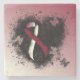 Burgundy and Ivory Ribbon Grunge Heart Stone Coaster