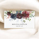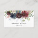 Appointment business card features a burgundy and navy blue watercolor floral drop with eucalyptus and gold accents. Perfect for hair stylist, makeup artist, salon and spa.