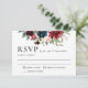A beautifully artistic watercolor floral wedding RSVP card design with painted burgundy, navy blue and blush watercolor florals and trailing greenery has elegant styling. The popular colour scheme is a wonderful choice for fall or winter weddings, but can also be used in spring and summer. Personalise with your required response date.