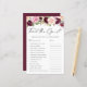 Find the guests. Mingle and chat with the guests to find the answer to their questions. Add this fun and playful shower game card to your event. It features watercolor floral bouquet of peach, purple and burgundy flowers with greenery accents. Personalise by adding your questions. This burgundy floral shower guessing game card is perfect for fall baby showers and bridal showers.