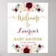 Burgundy and pink watercolor floral Baby Shower welcome sign