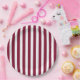 Burgundy and white candy stripes paper plate