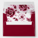 Burgundy and white flowers floral pattern wedding envelope. It features a Chinese-style floral pattern inspired by traditional ink painting. Featuring peonies in rich burgundy and pink tones with white highlights and pink watercolor wash on the inside while the outside is of burgundy colour.